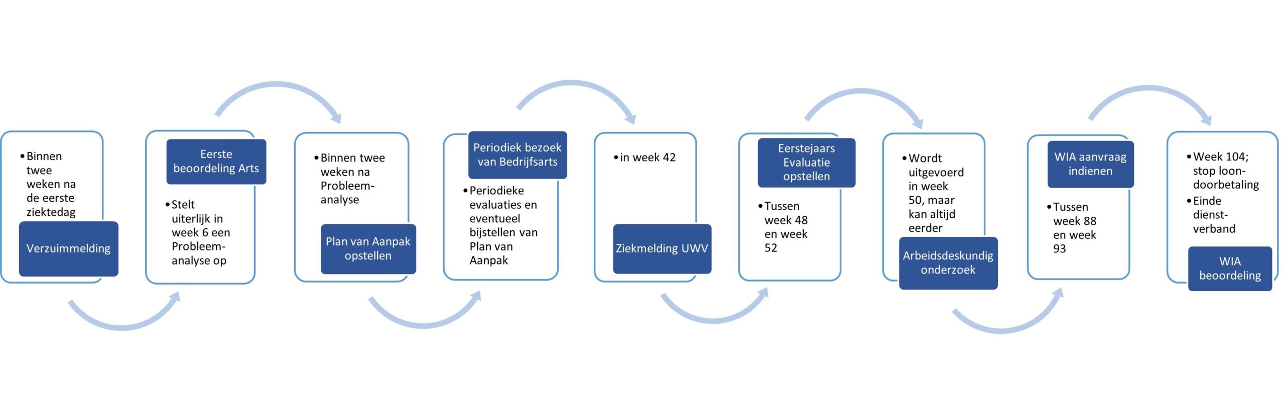 Binnen 6 weken na de ziekmelding moet er een Probleemanalyse opgesteld zijn door de Bedrijfsarts.